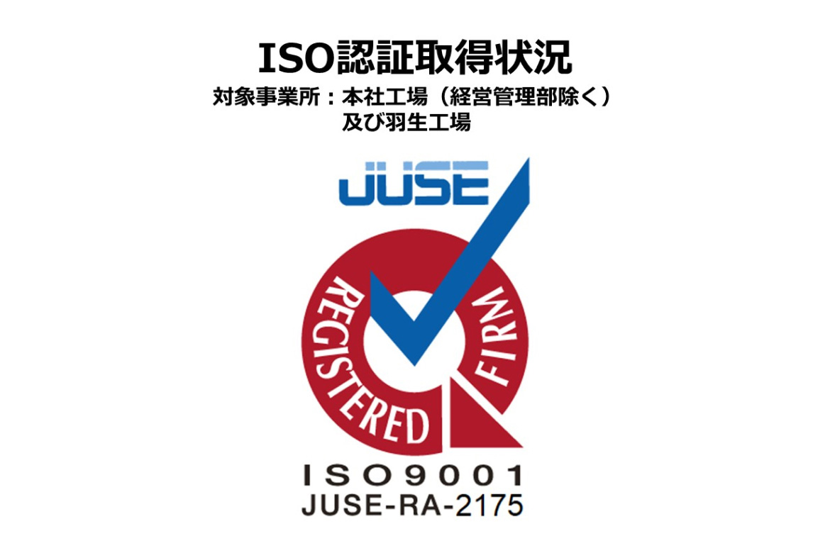 In November 1997, we obtained ISO 9001 certification as a specialized manufacturer of automotive parts and industrial machinery equipment, serving as a core pillar of Japan’s industry. Since then, we have consistently advanced all processes from product development to manufacturing in accordance with this system.